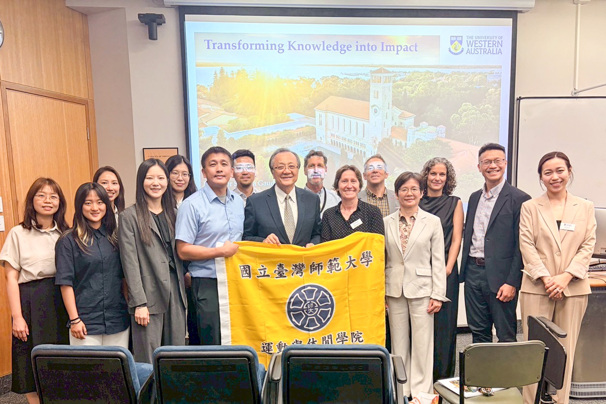 繼2024年3月出訪東澳、建構本校於大洋洲之學術網絡,國立臺灣師範大學金牌書院前院長鄭志富教授,於2026年3月3-7日率團出訪位於西澳的Optus體育場、伊迪斯科文大學及西澳大學,一同赴外參訪交流的包括林靜萍副院長、張育愷主任、何仁育主任、體育與運動科學系陳勇志副教授、黃昱倫副教授與張琪助理教授、金牌書院院生劉巧兮同學。