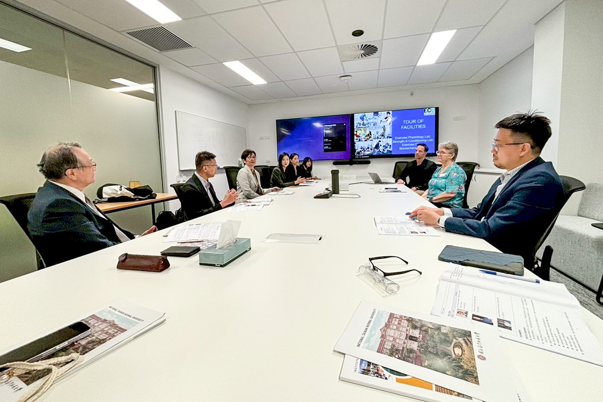 學院研究聚焦於環境、復健醫療與運動表現等領域,同時積極與社區合作,推動健康促進與運動相關計畫。經由介紹各自的研究領域與專長,本校運休學院與西澳大學師長對彼此皆有更深的了解,也發現兩校在研究與教學上有諸多相似之處,後續更將針對雙聯學位、師生交換等持續進行洽商與合作。