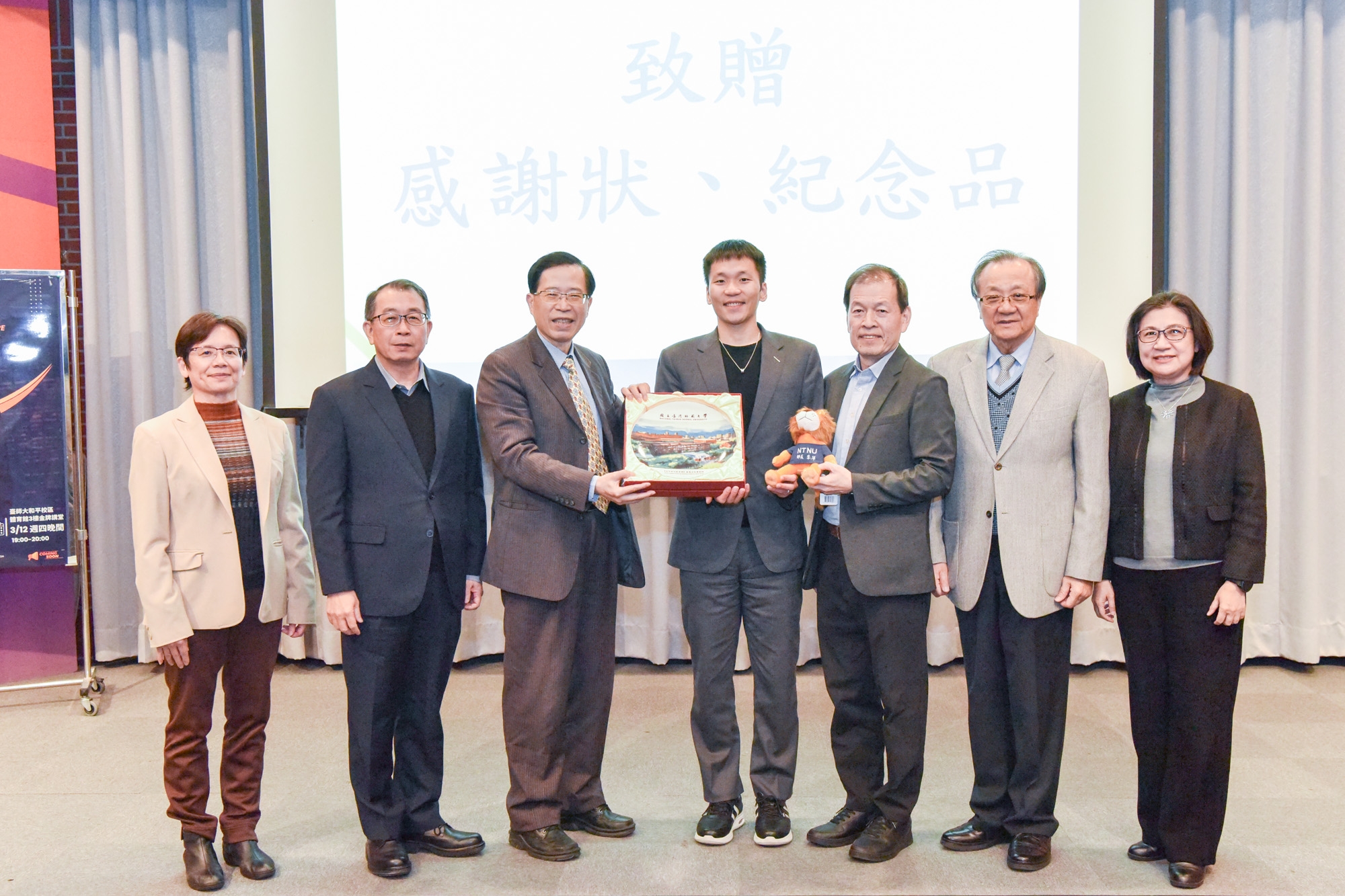出席師長包括曾任教育部體育署署長的張少熙副校長、前副校長鄭志富教授、林玫君學務長,以及運動與休閒學院相子元院長、林靜萍副院長、體育與運動科學系張育愷主任、運動競技系何仁育主任等十多人到場聆聽,展現學校對運動教育與運動員發展的重視。