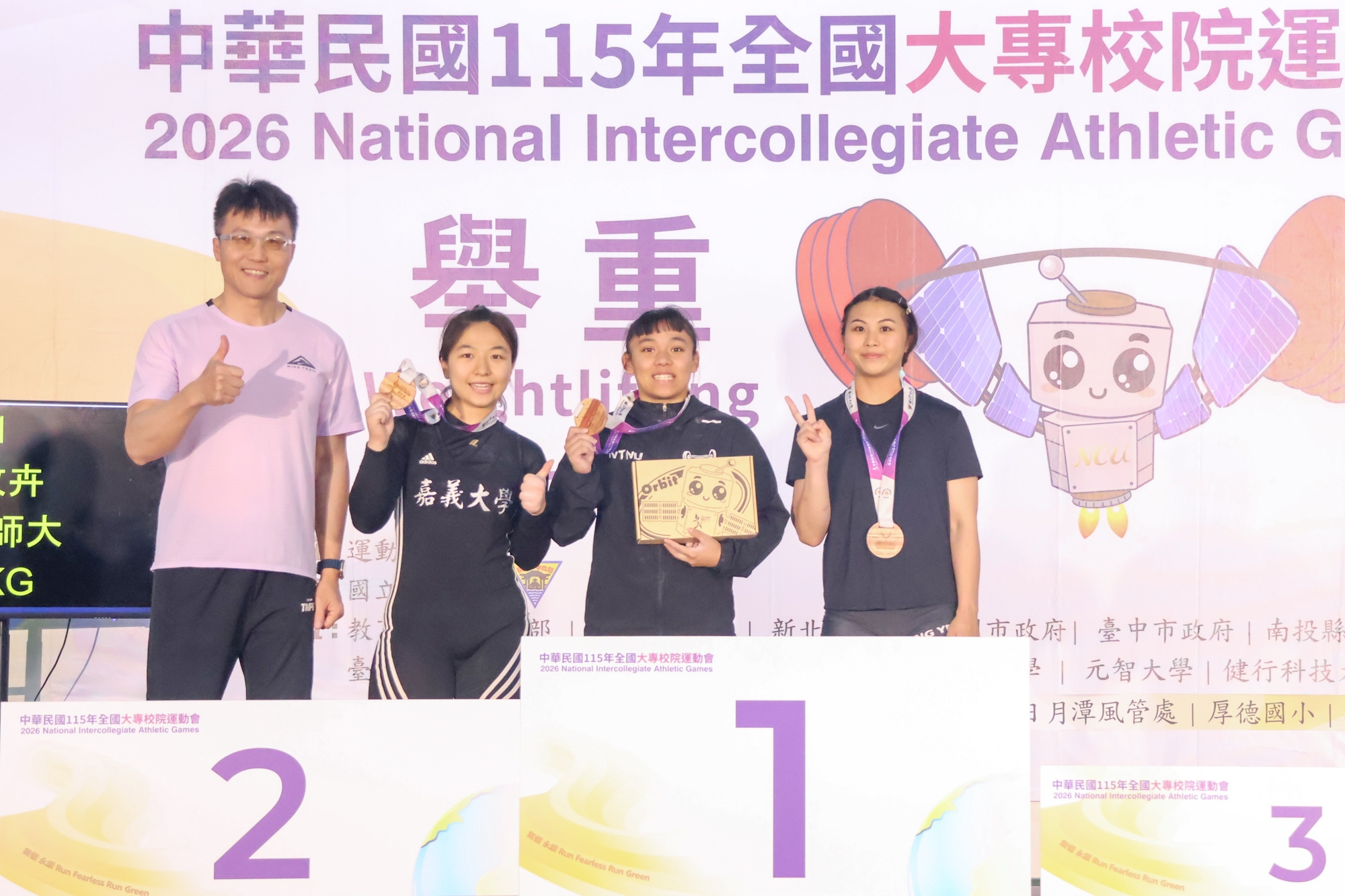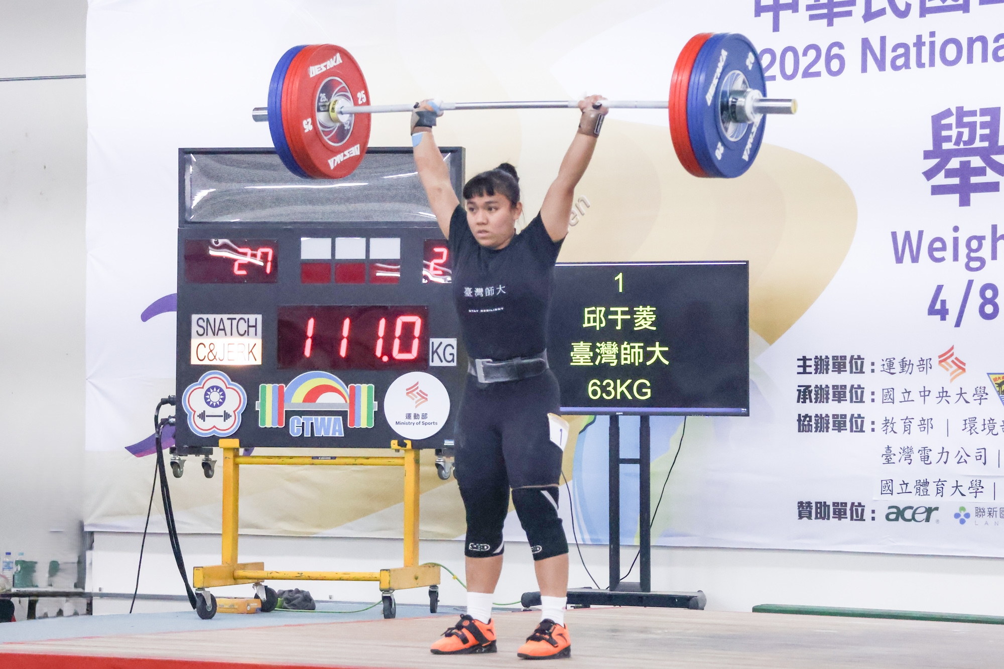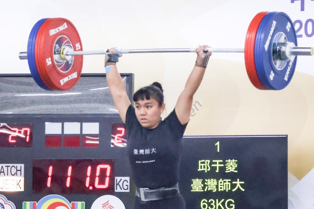 國立臺灣師範大學選手邱于菱在公開女生組63公斤級決賽中,以抓舉85公斤、挺舉111公斤、總和196公斤的成績奪得金牌,為臺師大再添佳績。